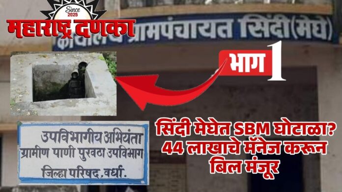 सिंदी मेघे ग्रामपंचायतीत SBM योजनेत लाखोंचा भ्रष्टाचार? निकृष्ट कामावर 44 लाखांचे बिल मंजूर अधिकाऱ्यांना मॅनेज करून बोगस कागदपत्रे तयार केल्याचा आरोप; कंत्राटदारावर कारवाईची मागणी